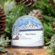 Un globe avec une belle scène hivernale comprenant des montagnes enneigées, une cabane rustique et des conifères enneigés. L'image peut être personnalisée. Vous avez également la possibilité d'ajouter du texte. Œuvre originale de W.B.