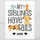 My Siblings Have Tails design avec nom personnalisé. Vous voulez ce design sur un autre produit? Cliquez sur "VISUALISER TOUS LES PRODUITS" en haut à gauche de cette description et choisissez l'article que vous voulez. Vous pouvez ensuite ajuster la taille de cette conception en fonction du produit sélectionné. Vous pouvez également modifier la couleur de l'option nom. Nous avons des milliers de modèles à choisir dans notre magasin pour toute la famille!