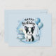 Rendez leur journée spéciale parfaite avec cette adorable carte d'anniversaire de Boston Terrier ! Avec un mignon chiot Boston Terrier noir et blanc, un gâteau d'anniversaire bleu rayé, des ballons joyeux et une boîte cadeau, ce design allie charme et célébration dans une carte souvenir.