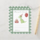 Fête anniversaire de enfant de l'aquarelle. Aquarelle Dino en casquette d'anniversaire, gâteau aux bougies, ballon rouge. Arrière - plan de cage verte.