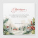 Ce joli design présente un texte calligraphie "Noël" personnalisé et un verset de Noël chaleureux sur un arrière - plan de style aquarelle, y compris un paysage paisible recouvert de neige avec des chalets, du pin et du saint.