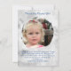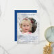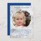 Dites merci à la fille aux fleurs avec une jolie carte contenant sa photo ! Arrière - plan floral blanc, bleu marine, texte amusant et un exemple de message. Sa photo est en brosse, cadre rond, ce qui rend les bords irréguliers. Ajoutez une photo mariage de la Flower Girl. L'inverse est bleu foncé. Modifiez les couleurs à l'aide de l'outil de conception.