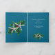 Cartes de voeux de Noël sur la plage en bleu profond, avec un modèle photo à l'avant. Une étoile blanche et un saint vert décorent un cadre blanc qui tient votre photo. Le texte à l'avant et à l'intérieur est blanc, avec un exemple de message de Noël. Plus d'étoiles de mer et de saints décorent à l'intérieur et à l'arrière des cartes. Choisissez également l'option de téléchargement instantané, pour économiser du temps et de l'argent, et partager en ligne.
