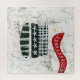 Un collage ludique mélangé de support en acrylique, crayon et crayon. Il présente un arrière - plan blanc griffé au crayon, avec des pops de couleur des calques ci-dessous, puis des éléments noirs et blancs en damier, des fleurs et des rayures. Il se termine avec un accent rouge loopy tourbillonnant près du sommet.