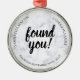 Ornement de réunion d'adoption pour commémorer une réunion, réunion ou contact. Pour les adoptants qui ont trouvé, contacté ou réuni avec des membres de la famille biologique de la famille biologique qui veulent un souvenir, un souvenir ou un cadeau symbolique à partager avec la famille nouvelle, cet ornement vous déclare trouvé en gros caractères noirs avec des modèles qui vous permettent d'enregistrer la date de réunion ou de contact et les noms ou autres messages. Placé sur un faux marbre blanc. Un gardien pour la mère biologique, le père, les demi-frères et soeurs ou d'autres membres de la famille élargie.