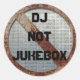 Un autocollant DJ cool. Un arrière - plan métalique avec le texte DJ pas jukebox et un grunge rouge signe interdit.