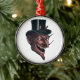 un Old Scratch souriant (le diable), dans un chapeau haut avec des chuchotements bien soignés et un sourire d'un million de dollars; détail d'un poster vintage