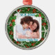 Un ornement photo de Noël tropical pour accueillir un nouveau bébé. Pour les nouveaux parents, une couronne sainte de vert et de rouge avec étoiles de mer blanche encadre la photo de famille (ou photo de bébé). Customiser avec la date de naissance et d'autres textes, tels que "bienvenue - nom de l'enfant".