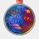 La peinture originale de beaux-arts des poissons colorés de récif coralien d'un clownfish et des scalaires de flamme à jaunir a repéré des anthias et plus par l'artiste Carolyn McFann imprimé sur un ornement de vacances de qualité pour les fans tropicales de poissons de mer.