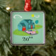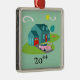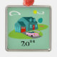 Ce rétro motif suburbain personnalisable d'ornement de Noël de Chambre comporte une maison américaine typique dans un voisinage américain typique, circa 1950. Une maison turquoise avec un toit de bleu de paon, et des fenêtres de turquoise sont parfaitement compensées par une porte rouge vibrante d'entrée principale et de garage. Un rose classique, voiture convertible à ailettes des années 1950 est garé sur l'allée pittoresque. Les flamants Kitschy, en plastique, roses semblent exacts à la maison sur la forme de boomerang de l'herbe verte fraîchement fauchée se reposant sur un arrière - plan de jade. La pelouse manicured est aménagée en parc avec les arbres lunatiques. Le haricot nain a formé des nuages et un rayon de soleil jaune d'un soleil vous a faits le savoir est juste un autre jour glorieux dans la banlieue moderne de la moitié du siècle. Personnalisez pour un cadeau unique !