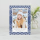 Carte photo de vacances élégant avec un motif de pull bleu et blanc avec des espaces réservés photo et texte.