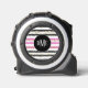 Votre mesure de bande ne sera pas volée avec elle personnalisée avec votre monogramme à trois lettres. Le monogramme est en blanc et placé sur une bannière en cercle noir. La bannière est placée sur un arrière - plan de rayures noires, roses et blanches qui a un couvert de confettis d'or.