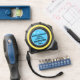 Mètre Ruban Joyeux Noël Papa Bleu Flèches blanches NOM