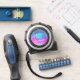 Bleu parties scintillant goutte mesure avec cool fluorescent, rose néon, violet et bleu clair arrière - plan. Personnalisez-le en ajoutant votre nom. Grand cadeau d'anniversaire ou de Noël pour les femmes et les filles.