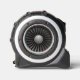 Vue frontale d'un moteur à turbine moderne montrant les pales de ventilateur et le capot brillant du moteur en argent.