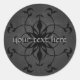 Belle fleur artistique noire de défilement gothique au centre d'un arrière - plan gris grinçant. Ces autocollants peuvent facilement être personnalisés avec votre nom ou votre texte si vous le souhaitez, ou cliquez sur le "x" sur la ligne de texte si vous ne voulez pas écrire sur cela du tout. Grand cadeau de vacances ou rembourrage.