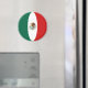 Le drapeau du Mexique a été soigneusement fixé à la forme circulaire de cet aimant. Une façon décorative de promouvoir la culture mexicaine.