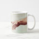 Michaël Angelo remet la tasse. Chapelle de Sistine de fresque. Une des scènes les plus iconiques dans l'art. occidental. Ce détail de la création de Michaël Angelo d'Adam montre Dieu atteignant vers le bas pour toucher des doigts avec sa création. Le travail est chargé de l'importation religieuse et culturelle et se tient en tant qu'une des images les plus identifiées au monde. Un grand cadeau pour des fans de Michaël Angelo, de la chapelle de Sistine, de l'art de Renaissance, et de la peinture religieuse.