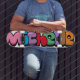 The name Michelle in colourful bubblegum lettering. The colours can be changed.