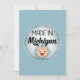 Cette drôle d'invitation baby shower présente un mignon visage de bébé blanc qui dit "Made in Michigan" sur un arrière - plan bleu. Image devant et derrière l'invitation.