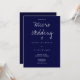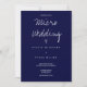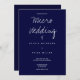 Un faire-part de mariage pour un micro mariage. Cette invitation est faite en bleu foncé et blanc avec juste assez d'informations pour gagner la journée. Ajoutez simplement vos informations, ajoutez cet invitation à votre panier et profitez de votre petit mariage intime.