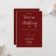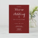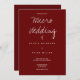 Un faire-part de mariage bordeaux pour un micro-mariage. Cette invitation a été présentée dans Brides.com’s "The 20 Best Invitations for Micro Mariages That Will Make a Big Impression". Cette invitation est faite en bordeaux et blanc avec juste assez d'informations pour gagner la journée. Ajoutez simplement vos informations, ajoutez cet invitation à votre panier et profitez de votre petit mariage intime. Micro Mariage Bourgogne Typographie Invitation Conception de vacances | ©Melissa Patton - Designer