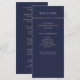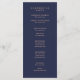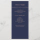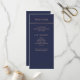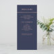 Ce programme de mariage moderne et élégant présente un texte de couleur rose sur un arrière - plan bleu nuit, avec une bande d'or fausse rose en haut.
