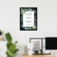 Ce panneau d'accueil mariage présente une aquarelle peinte succulente, eucalyptus, et des feuilles verts botaniques avec un cadre rectangle sur un arrière - plan bleu marine de minuit. Des articles correspondants sont également disponibles.
