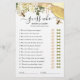 Un joli jeu de baby shower d'été avec un simple arrière - plan blanc uni, avec des bords de cristal d'agate de parties scintillant jaune et or, un arrière - plan de nid d'abeille, gouttes de miel, ruche, flores d'aquarelle blanche, abeilles, et un modèle "devinez qui, maman ou papa" qui est facile à personnaliser.
