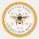 Étiquettes rustiques et simples de pot de miel avec une impression vintage d'abeille de miel et le texte pur miel brut et votre nom d'entreprise dans la typographie moderne sur un arrière - plan jaune moelleux, avec une jolie touche de marguerites florales blanches. Il suffit d'ajouter votre nom, le nom du produit et le poids au étiquette. Conçu exclusivement pour les apiculteurs par Happy Dolphin Studio. Si vous avez besoin d'aide ou de produits correspondants, veuillez nous contacter à happydolphinstudio@outlook.com .