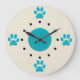 Mignons pattes de chien mural horloges de couleur design noir, crème et couleurs turquoises avec de petits empreintes de pattes de chien tout au long de l'horloge face dans ce décor coloré mur animal design horloge pour votre cuisine, salle de bain, ou toute chambre dans votre maison, vous voulez ajouter un peu de couleur et de caractère avec un thème chien.