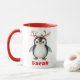 Répandez des fêtes de joie avec ce Penguin Reindeer Personnalisé Noël Nom personnalisé Mug! Cette adorable tasse à café de Noël présente un charmant manchot habillé de bois de rennes festifs et de saints. Customisez facilement avec n'importe quel nom pour créer un cadeau de vacances unique et délicieux pour les enfants, les amoureux des animaux, ou toute personne qui aime une touche de fantaisie pendant la saison de Noël.