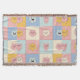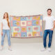 Magnifique conception de couverture pastel adorable présentant un motif patchwork de nuages joyeux, de cœurs et d'étoiles dans des teintes douces de jaune, rose, bleu et crème. Parfait pour une décoration intérieure cosy, gaie et fantaisiste.