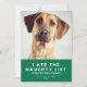 Ce drôle de carte photo de vacances met en vedette un arrière - plan vert festif avec l'accueil "J'ai mangé la liste coquine (vous êtes les bienvenus)" et une photo. Ce design s'adapte à une seule photo carré sur le devant de la carte. À l'envers, il y a un arrière - plan à rayures en diagonale rouge et blanche, auquel vous pouvez ajouter une autre photo et/ou du texte supplémentaire en sélectionnant l'option "modifier à l'aide de l'outil de conception". Vous pouvez même supprimer le motif si vous voulez... Et toutes les couleurs peuvent être customisées par vous !