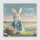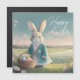 Joli lapin de Pâques en petite veste bleue avec panier d'oeufs de Pâques dans un champ de fleurs sauvages