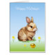 Mignonne lapin de Pâques avec oeuf doré et fleurs Carte de Joyeux Vacances. Le texte peut être personnalisé pour Pâques ou Anniversaire. Les lapins symbolisent la longévité, l'abondance et la bonne fortune.