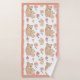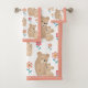 Motif mignon d'une mère lionne avec bébé et fleurs serviettes de bain de la fête des mères avec bordure de corail. Un joli motif d'une mignonne mère de lion avec son bébé et des fleurs de corail ornent cet ensemble de serviettes de bain.