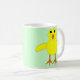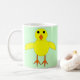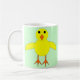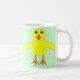 Cette tasse élégante présente une adorable image d'un mignon petit poussin de Pâques jaune aux yeux noirs beady, aux pieds orange et à un bec orange large ouvert. Ce design charmant sera apprécié par les adultes et les enfants.