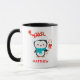 Un mignon, simple pingouin personnalisé tasse de Noël. Penguin porte un casquette à pois rouge et une écharpe bleue et tient un sucre de canne. Personnalisez-le pour un cadeau ou pour vous-même ! Conçu pour vous par Blackberry Boulevard.