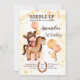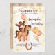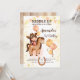 Mignonne petite cowgirl selle le modèle d'invitation d'anniversaire. Femme à cheval de bébé mignonette avec ballons et drapeaux de bottes à l'arrière - plan. Couleurs Brown de la ferme jaune.
