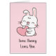 Un doodé d'un mignon lapin blanc embrassant un coeur et une douce légende de jeu de mots d'amour qui dit "Un lapin t'aime !" Parfait pour la Saint Valentin, confessions d'amour et occasions romantiques ! Personnalisez avec un message à l'intérieur de la carte.