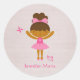 Cet autocollant rond a un arrière - plan violet avec une ballerine afro-américaine debout sur son orteil tippy. Il y a un papillon et des coeurs de chaque côté d'elle. En bas, vous pouvez facilement customiser votre nom ! Certains éléments de cette conception sont fabriqués par http://www.mygrafico.com/stockberry-studio/aff_124.html