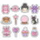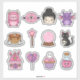 Ajoutez une touche amusante et légèrement effrayante à vos cahiers et agendas avec cette collection de motifs rose clair et violet. La feuille d'autocollants présente une variété de personnages adorables et légèrement effrayants comme un monstre rose duveteux, un chat noir souriant tenant un crâne et un petit dragon sympathique. Vous trouverez également des objets magiques comme une boule de cristal lumineuse, une baguette étoile et une bouteille de potion rose, ainsi que des friandises sucrées comme des cupcakes avec des fantômes et des pancakes recouverts de sirop. Les couleurs douces et les visages amicaux rendent ces autocollants parfaits pour tous ceux qui aiment une version mignonne des thèmes effrayants traditionnels.