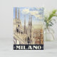 Illustration vintage d'art d'affiche de voyage européen avec vue sur Milan, Italie, présentant la cathédrale gothique "Duomo di Milano" par une belle journée ensoleillée. Architecture religieuse italienne classique.