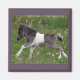 Photo détaillée d'un bébé mini-cheval sur sa première brique dans le pâturage