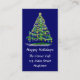 Petit calendrier pratique de taille de carte de visite à distribuer aux amis et aux collègues. L'avant est un arbre de Noël de style bohème d'une conception abstraite numérique originale avec la tresse, la guirlande et l'or et les ornements bleus. L'arrière - plan est bleu profond de Noël, mais peut être changé en couleur de votre choix en cliquant sur sur la personnaliser si vous souhaitez. Changez facilement le message et votre information d'affaires. De mini calendriers sont toujours appréciés en tant que petits frais supplémentaires pour glisser dans le sac à provisions de votre client ou les cartes ou les cadeaux.