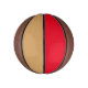 Le mini basket-ball personnalisé est présenté ici avec des accents de couleur rouge et or, customisez votre propre ou achetez tel quel.