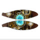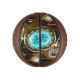 Turquoise lenses with antique watch with brass gears and golden keys on rusty, brown background. Steampunk style.
