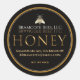 Votre prénom semble extraordinaire dans une police décorative blanche et classieuse qui se reflète astucieusement dans l'or foncé sur un arrière - plan noir. Coordonnées, adresse et poids net miel est écrit dans la partie inférieure du étiquette sous le mot "HONEY" qui prend le champ central dans une police métallique ciselée or. Conversions de poids net miel : 8oz (227g), 12oz (340g), 16oz (454g), 32oz (907g), 5lb (2,27kg). Ce mini-étiquette est idéal pour les petites jarres ou les couvercles de jarre de miel.