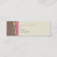 illustration originale & design copyright edgeplus*cre8tiv 2009. COLOR SCHEME - mocha lolly vanilla Un design brillant et audacieux pour vos cartes de visite - se démarquent de la foule avec ce petit nombre! Une simple mini carte à garder dans votre poche à distribuer lorsque nécessaire - facile à customiser avec votre propre texte! ! SIMPLE :: CHIC :: ECONOMIQUE Comme ce que vous voyez mais avait un code couleur ou un produit différent en tête? N'hésitez pas à me contacter kat@edgepluscre8tiv.com avec vos idées et je suis heureux d'en discuter plus avant.